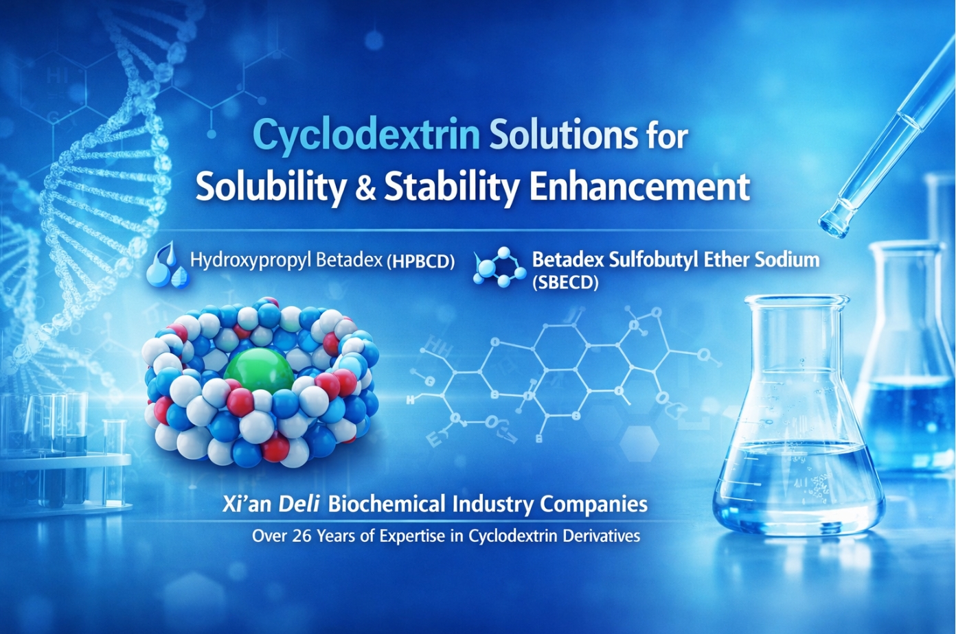 Siklodekstrin dikenal luas karena kemampuannya meningkatkan kelarutan dan stabilitas senyawa yang sukar larut atau sensitif secara kimia. Karena struktur molekul sikliknya yang unik, siklodekstrin dan turunannya telah menjadi eksipien fungsional yang penting di bidang farmasi, kimia, dan bidang formulasi terkait. Menanggapi meningkatnya persyaratan teknis dan peraturan, Xi’an Deli Biochemical telah menyempurnakan dokumentasi teknis dan dukungan produk untuk turunan siklodekstrin utamanya:hidroksipropil betadex (HPBCD) dan betadex sulfobutyl ether sodium (SBECD).