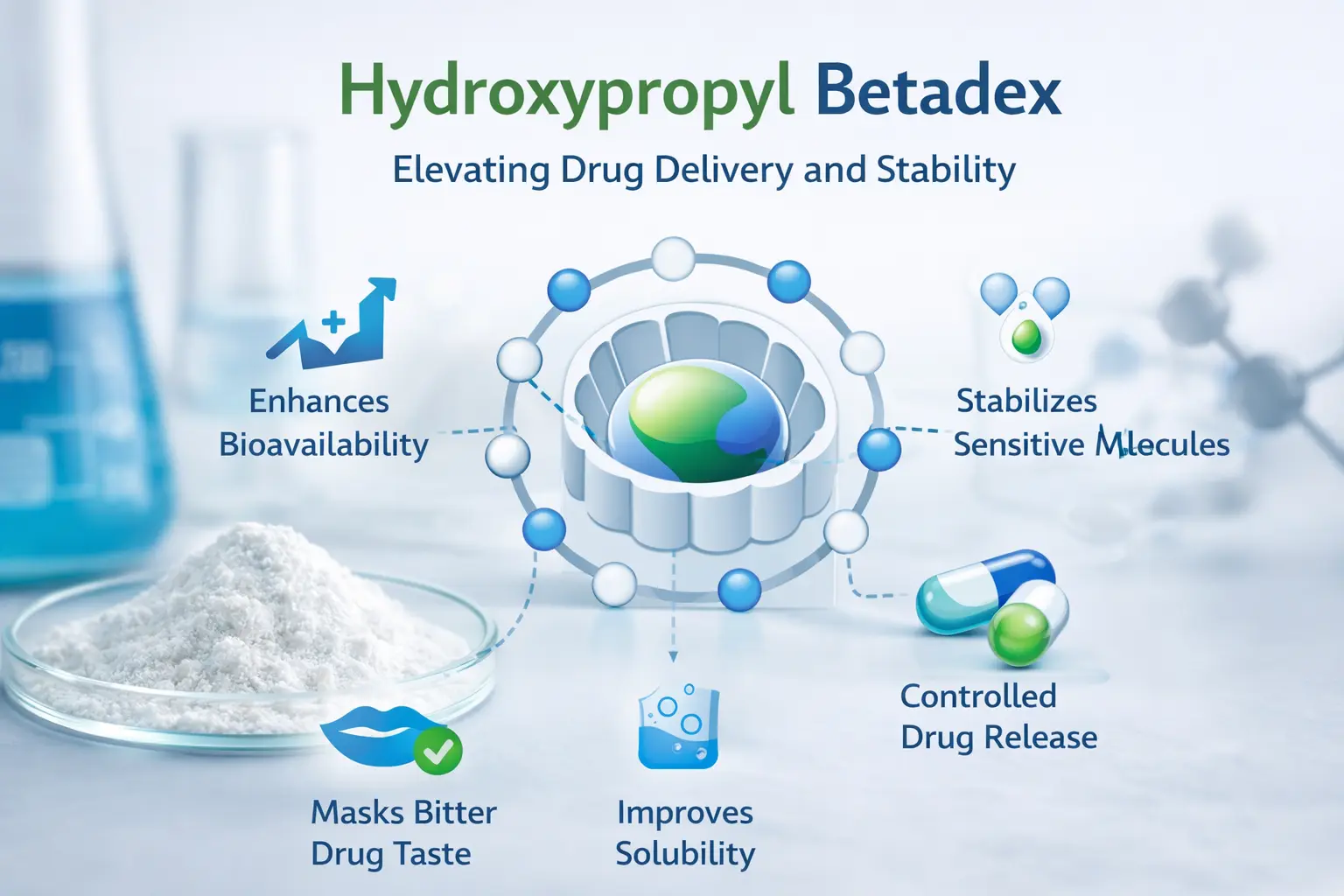 Hidroksipropil Betadexadalah bahan obat revolusioner yang mengubah obat yang tidak larut dengan baik menjadi formulasi yang bekerja dengan baik. Ada banyak hal hebat tentang turunan siklodekstrin yang diubah ini, seperti kelarutan obat yang lebih baik, ketersediaan hayati yang lebih baik, dan stabilitas yang lebih baik. Teknologi kapsul molekuler membuat kompleks inklusi stabil yang mengatasi masalah yang muncul pada formulasi lain. Para ilmuwan di industri farmasi di seluruh dunia menggunakan pembawa polimer fleksibel ini untuk meningkatkan metode pemberian obat, menurunkan toksisitas, dan mendapatkan hasil terapi yang konsisten baik untuk penggunaan oral maupun suntik.